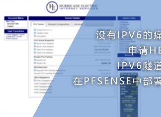 没有IPV6的痛,申请HE的IPV6隧道并在PFSENSE中部署